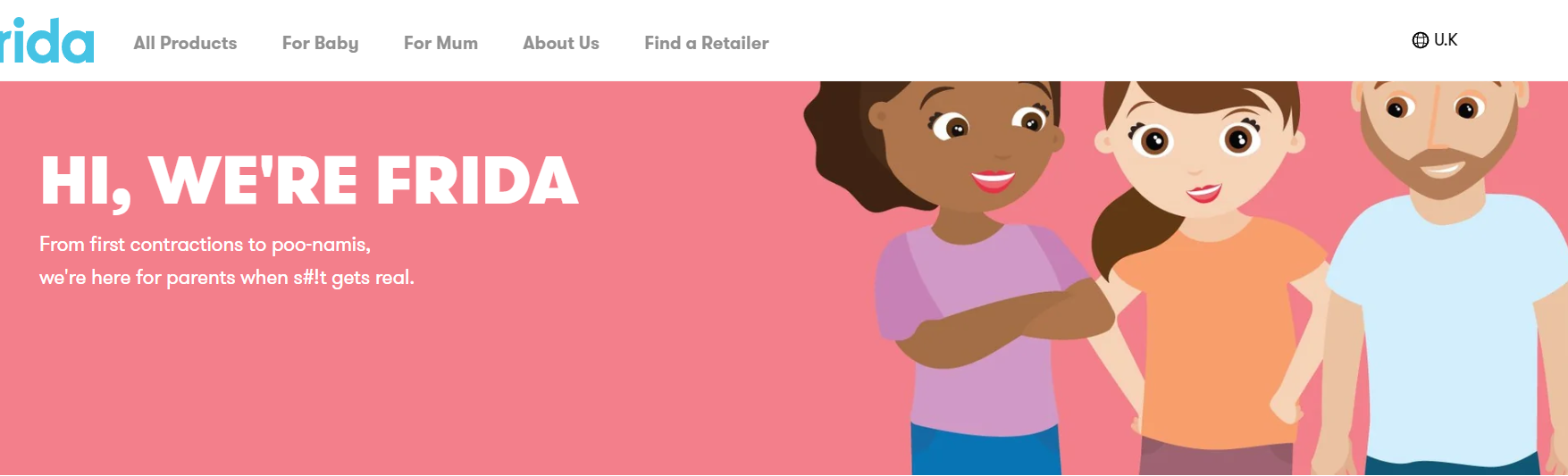 Frida is a brand that sells a collection of baby and mum essentials, from post-partum maxi pads to soother-style medicine dispensers and the ‘fan-favourite’ SnotSucker. Lovely. They describe their mission on their website, saying: “Frida is here to help prepare parents for the unfiltered realities of parenthood, with simple, yet genius solutions that get the job done”.