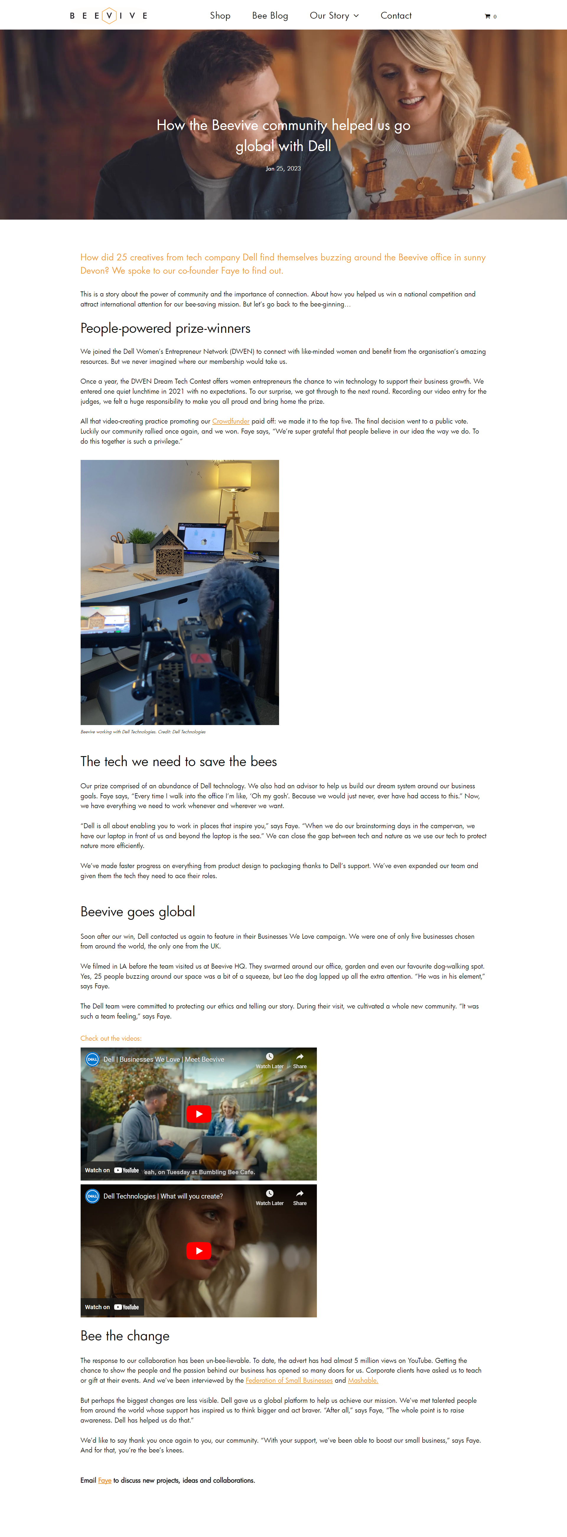 Faye is the founder of Beevive, a company that makes products to support and ultimately save the bees. She got in touch when she was having trouble writing her blog posts. “I’m finding it painful and time consuming,” she said.